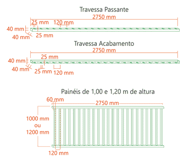 - Pintados em poliéster após o processo de solda e fixados nos montantes com fixadores de alta resistência.